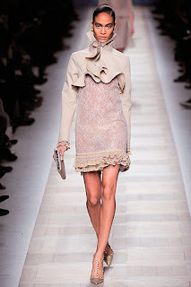 I wasn't exactly thrilled with Maria Grazia Chiuri's and Pier Paolo Piccioli's last collection for Valentino, but I'm very happy with their Fall 2010 ready-to-wear. It's ruffles galore, with tiny leather jackets that remind me of the Valentino handbags I so lust over, and tiny rows of lacy flounces. Beauteous. My faves: